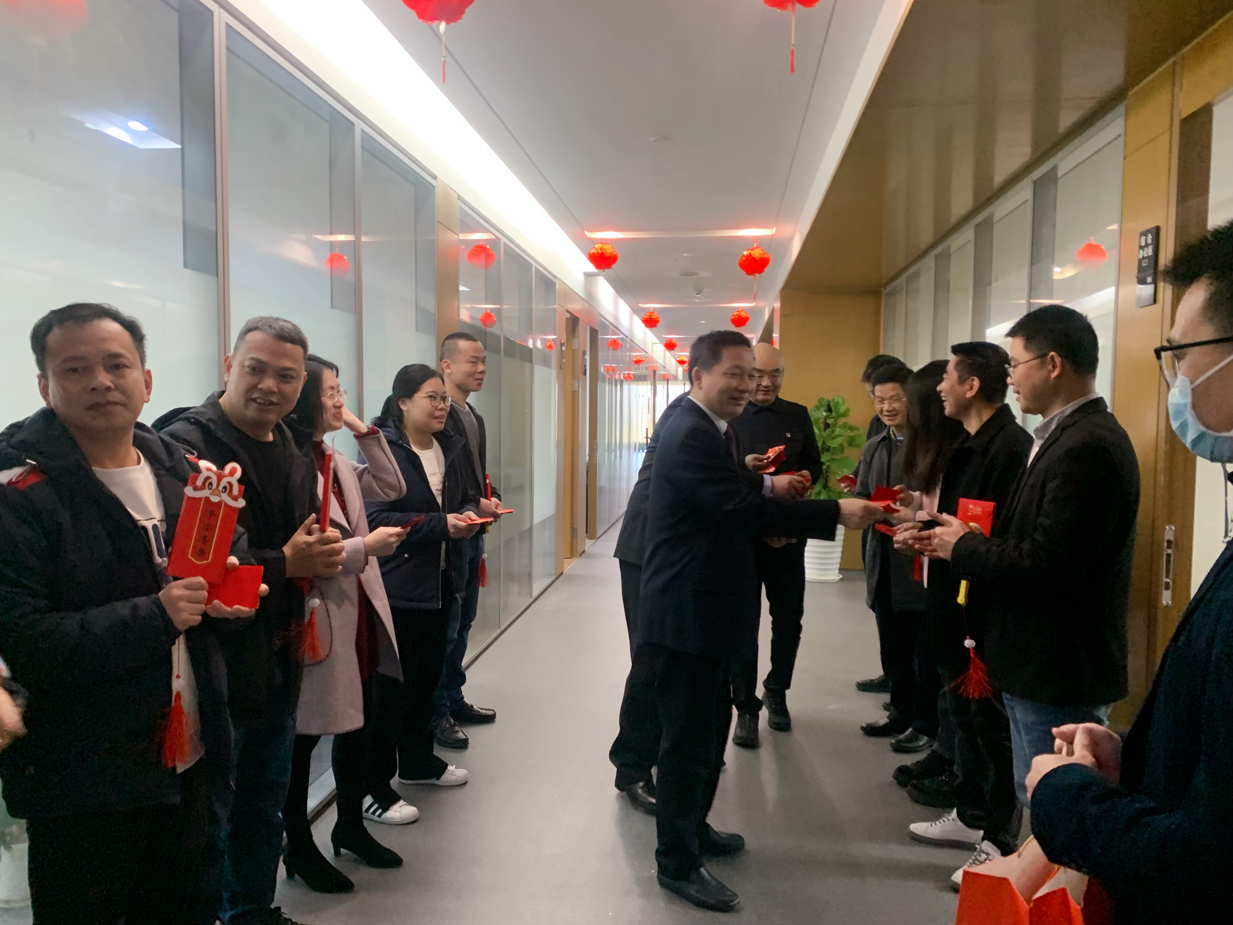 活動過后,公司經(jīng)營管理層來到辦公區(qū)給員工拜年,派發(fā)開年利是,送上新年祝福,現(xiàn)場陣陣歡聲笑語,讓還處于“待機”狀態(tài)的員工迅速恢復元氣,回歸到“滿血”狀態(tài)。