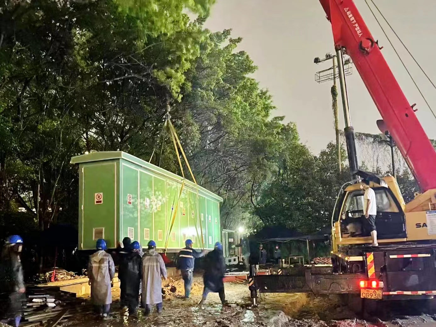 疫情就是命令,防控就是責任。接到任務后,智光電服與時間賽跑,立刻協調各設備材料供應商,面對時間緊、貨期短等不利因素,想方設法落實工程物資的生產、配送。同時,迅速組織起76人的施工隊伍,馬不停蹄投入到方艙醫院的建設。建設過程中,智光電服因地制宜,邊施工邊協同供電部門制定科學可行的送電方案,克服交叉作業、連續降雨等困難,不畏艱辛,日夜奮戰,最終于112715時順利送電。從實施方案制定到完滿順利送電僅歷時9個晝夜,再次刷新了公司的施工記錄,為天河方艙醫院順利投入使用奠定了扎實的基礎。