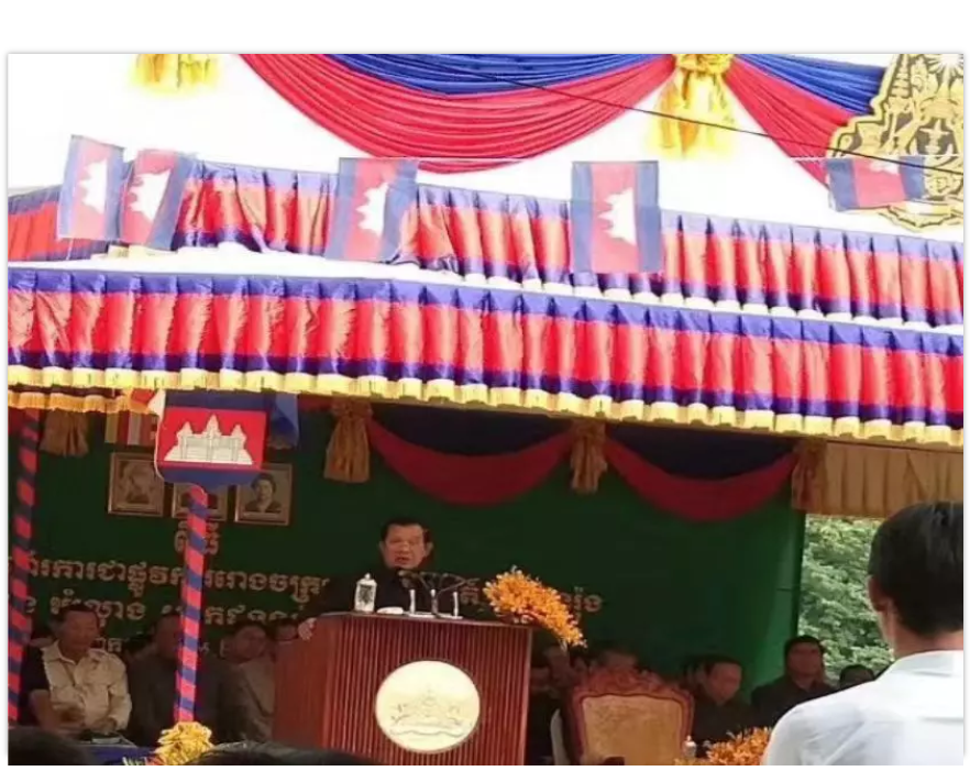 柬埔寨總理洪森親臨儀式現場發表重要講話,對泰文龍水泥廠的建設工作成果表示肯定。