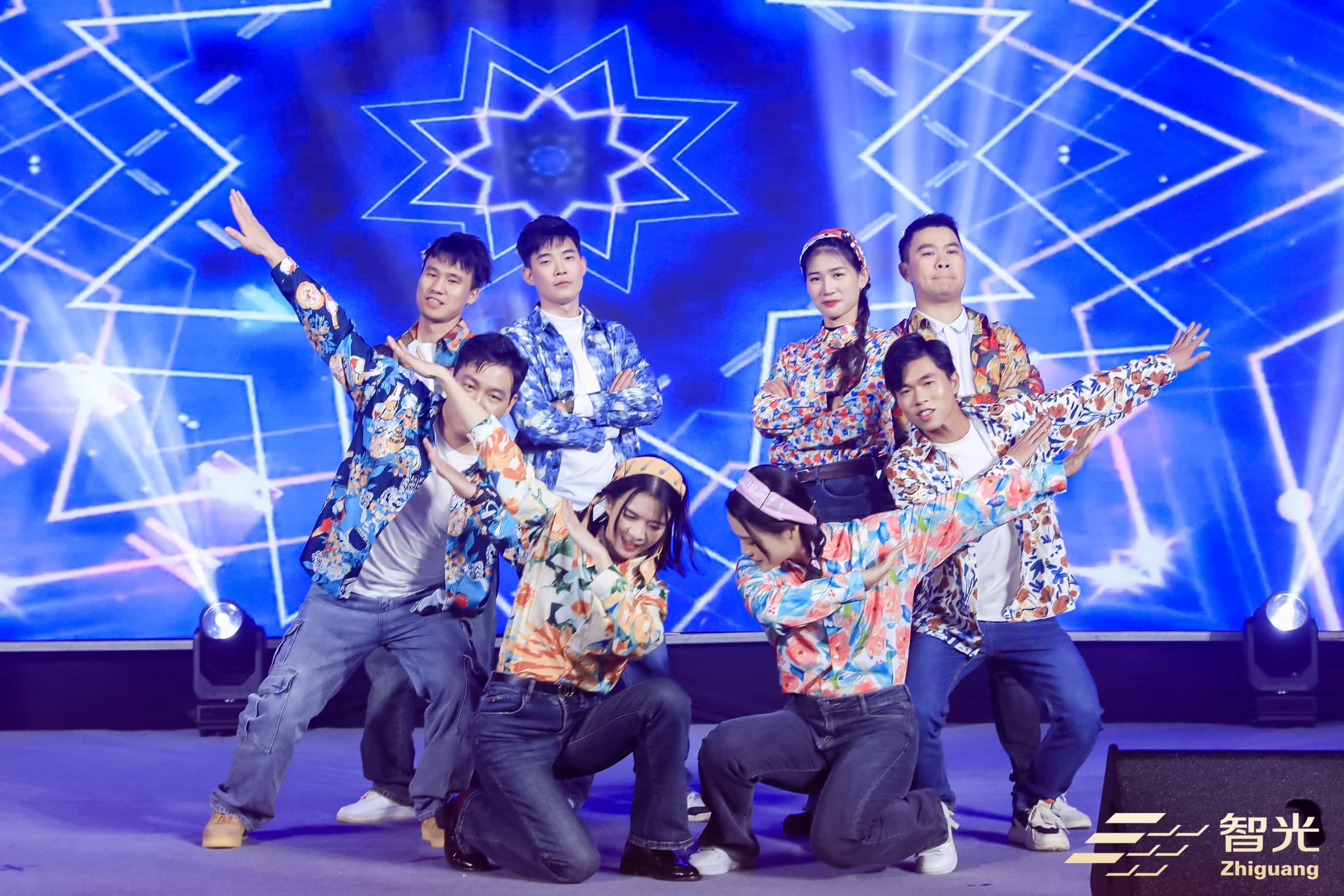 The performance blended pop and electronic dance elements, with the performers dressed in colorful outfits featuring different words. The group formation conveyed four heartfelt blessings to all Zhiguang employees. Moving in sync with the dynamic rhythm, they created a scene of unity, collaboration, and harmony, offering the audience a rich visual feast.