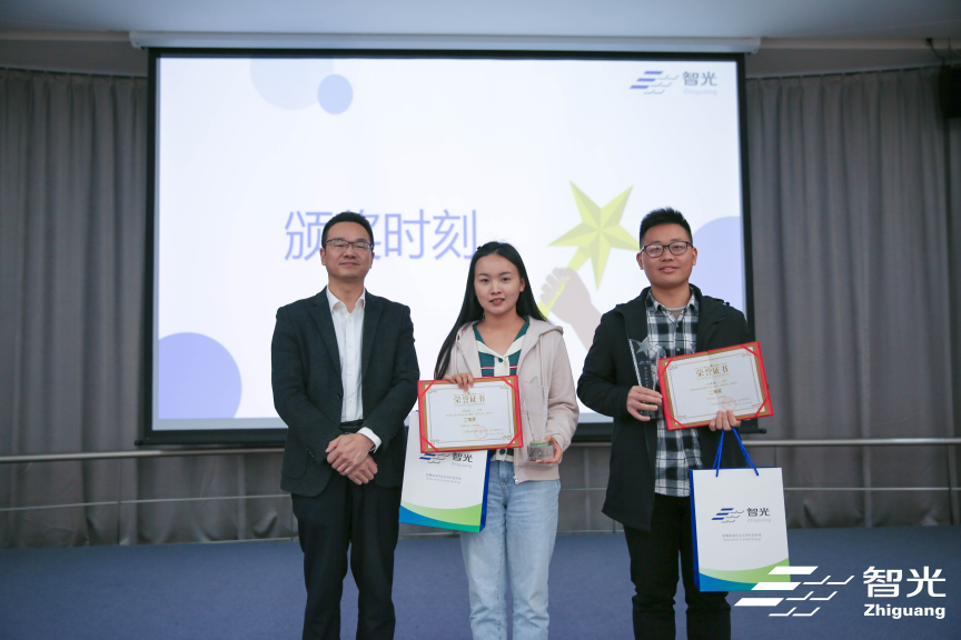 (圖為廣州智光電氣股份有限公司預(yù)算與運(yùn)營管理部部長歐華為最佳人氣獎、“門面擔(dān)當(dāng)”獎獲獎選手頒獎)